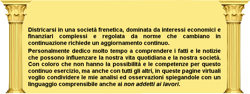 L'articolo non va inteso come suggerimento, consiglio o indicazione, ma semplicemente come una sintesi di quanto conosciuto sull'argomento.